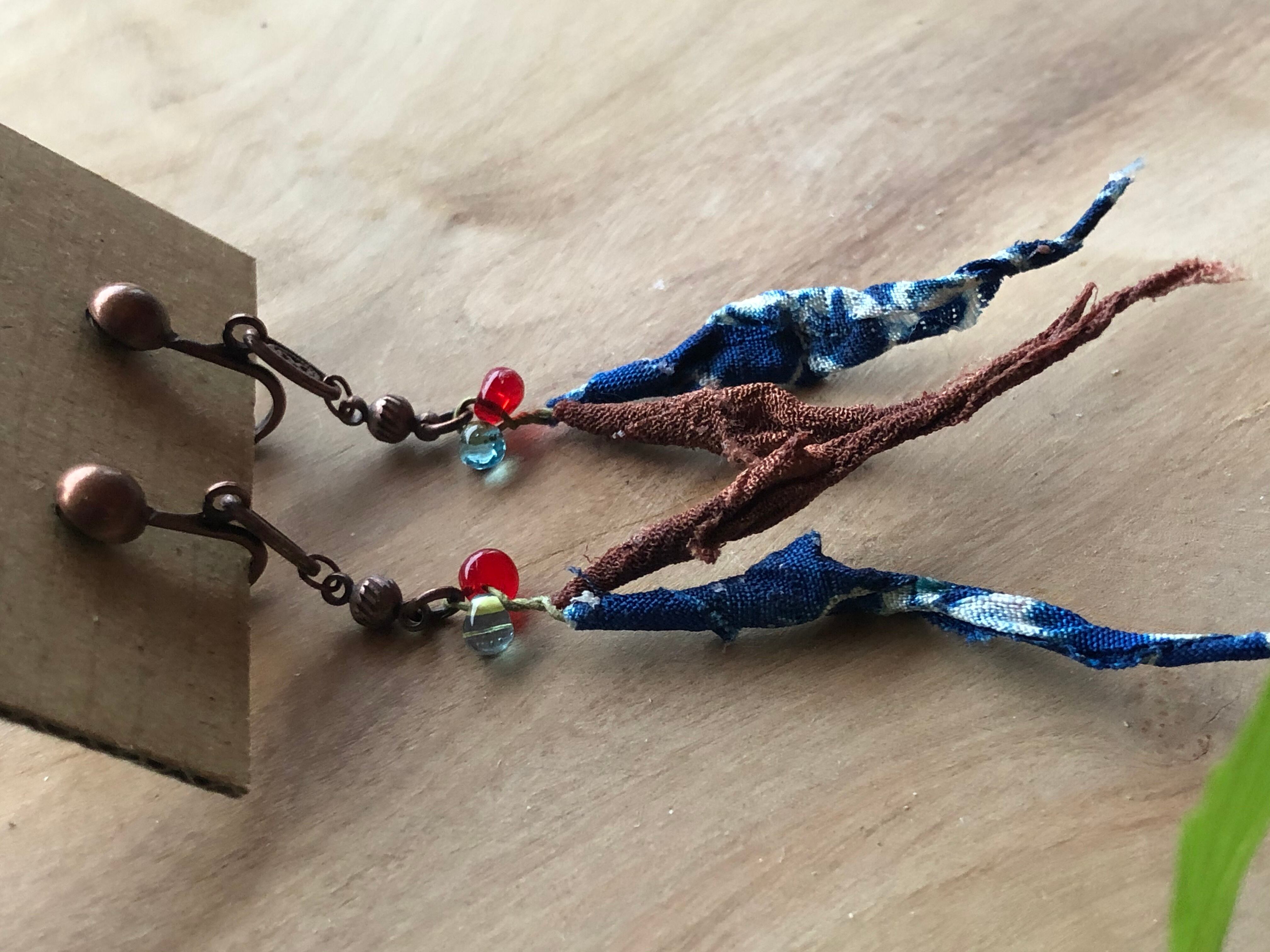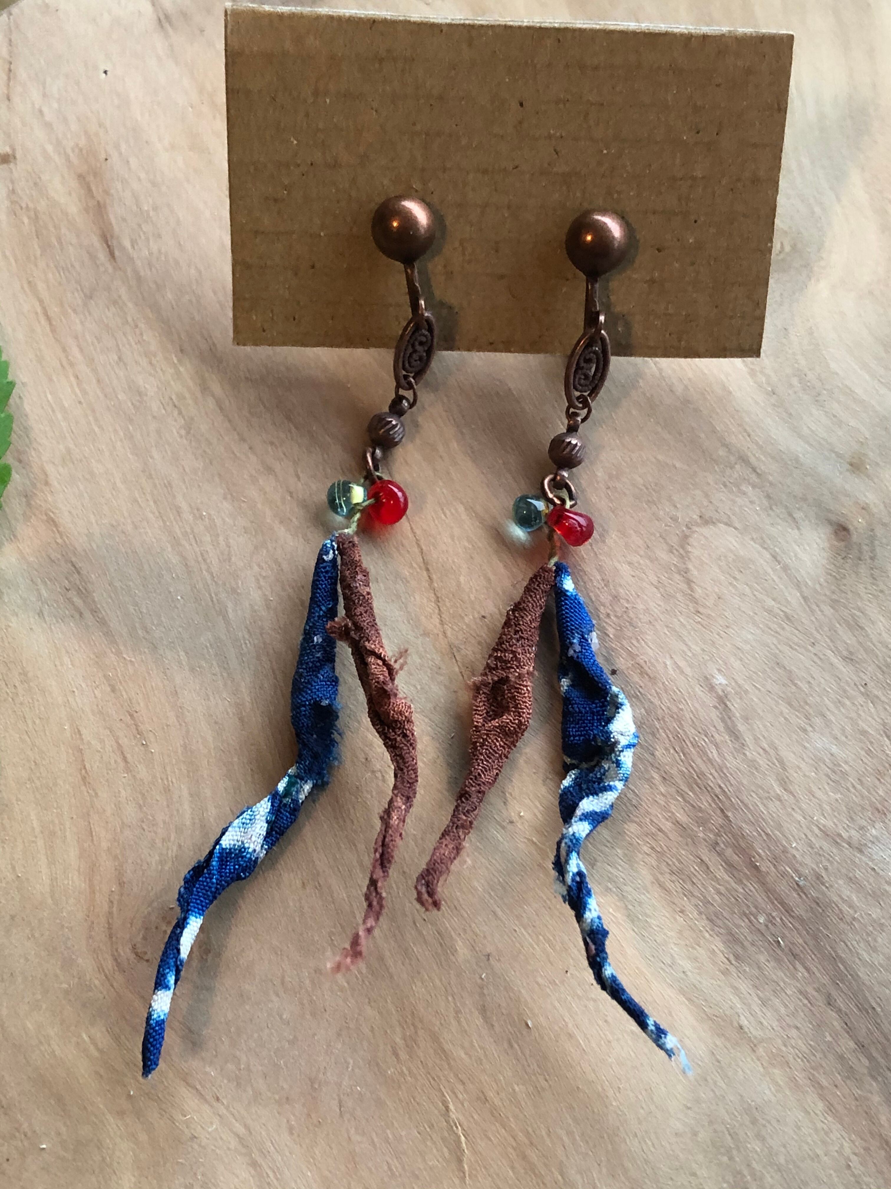 ER03 柳イヤリング 藍茶