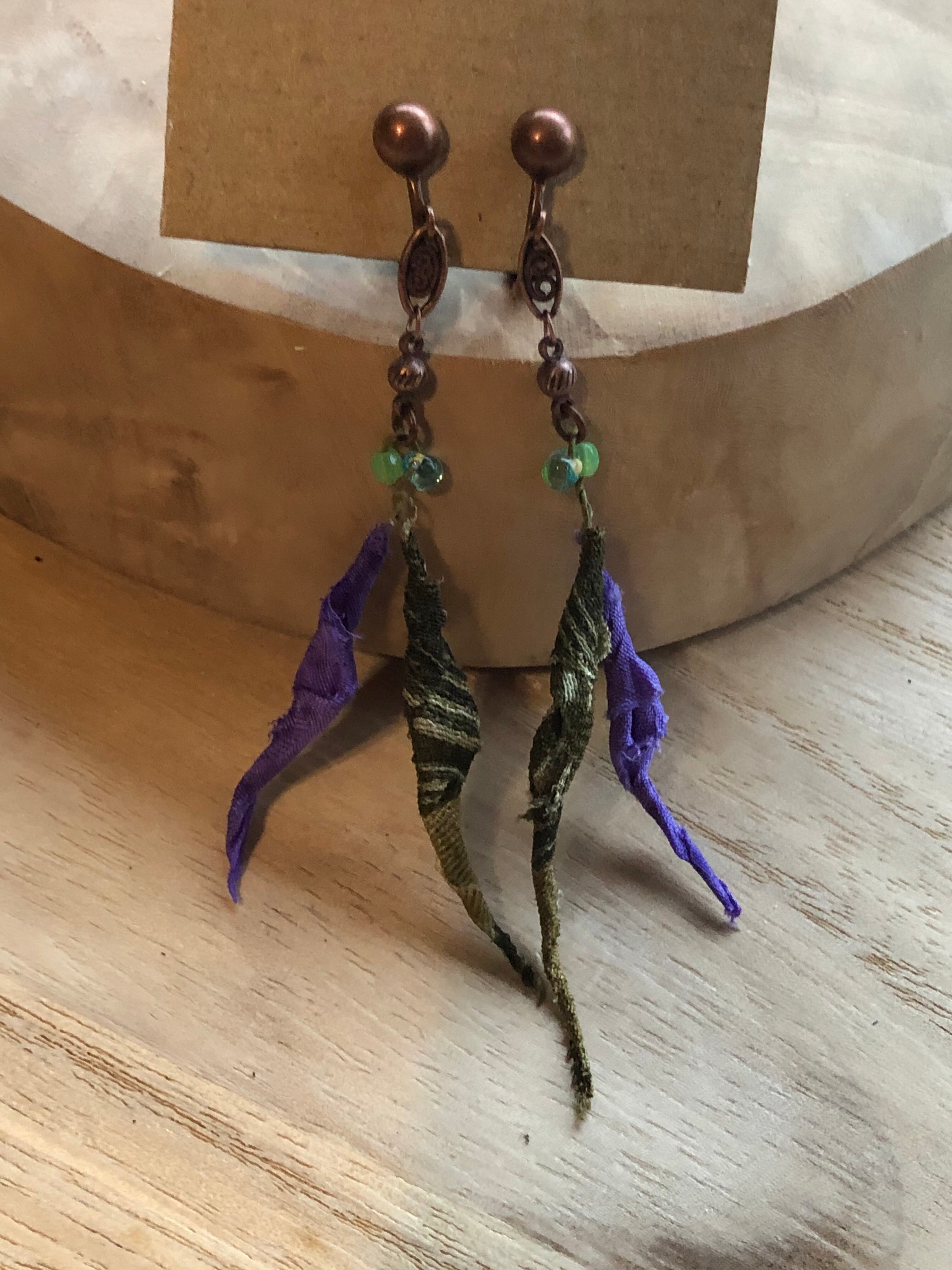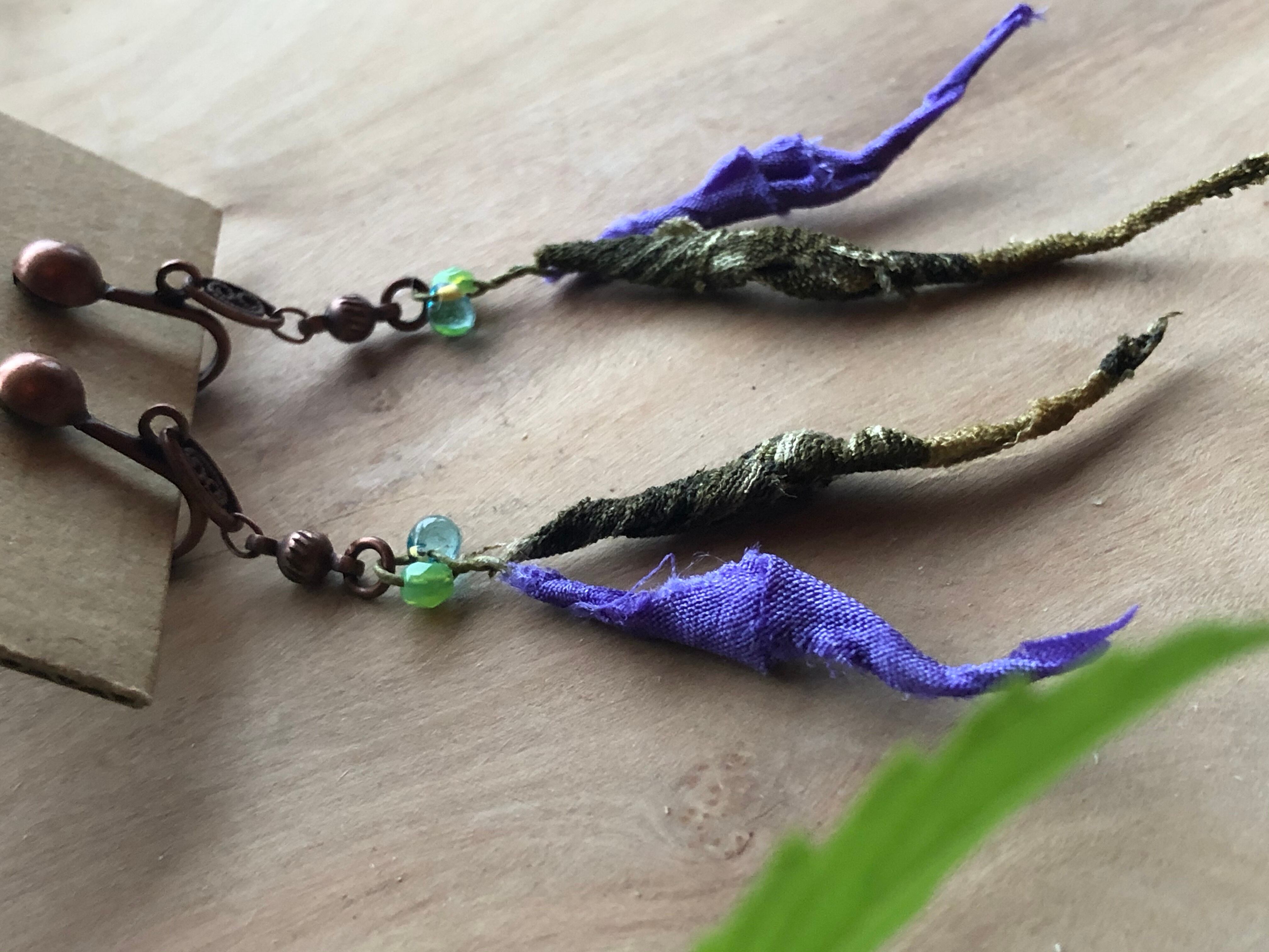 ER08 柳イヤリング 抹茶紫