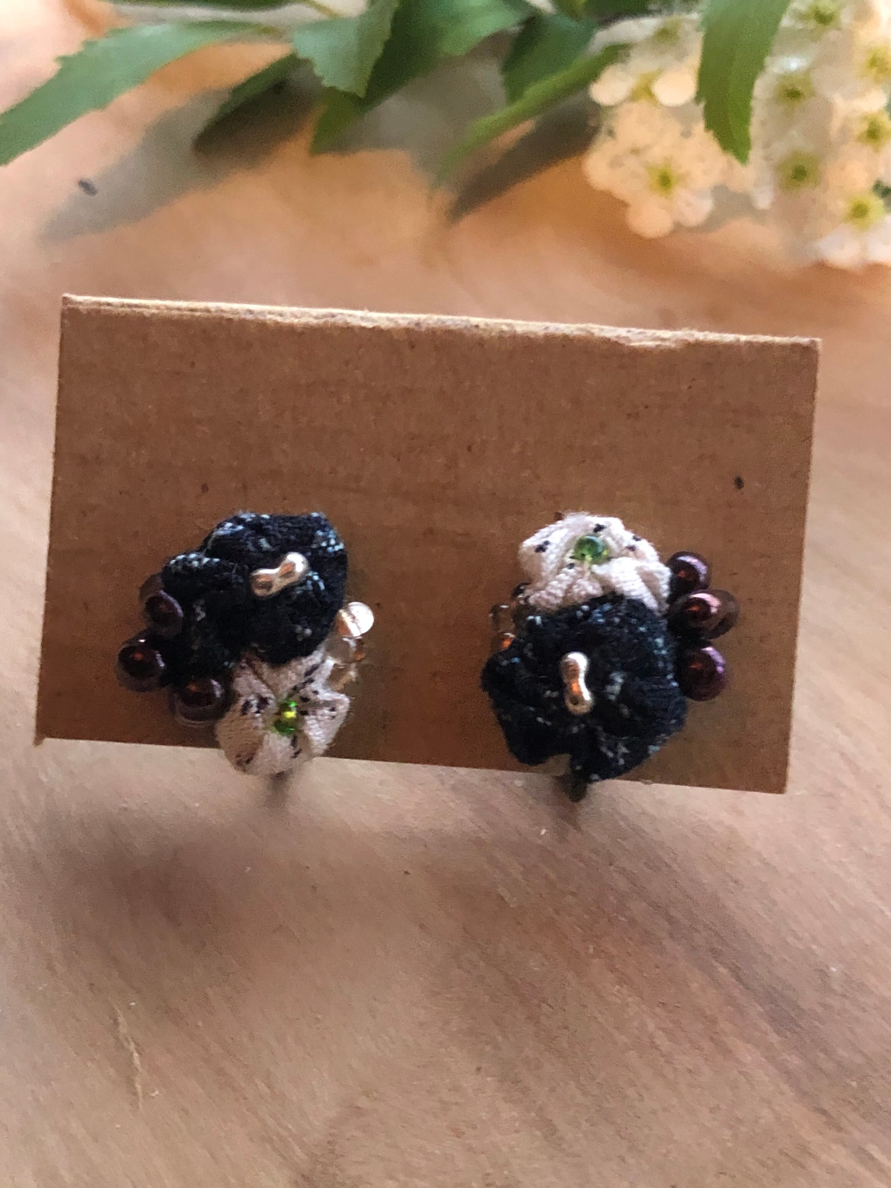 縮緬、絣、大島紬等を玉虫色メタリックビーズと、チクチク縫って創った可愛らしいオリジナル。