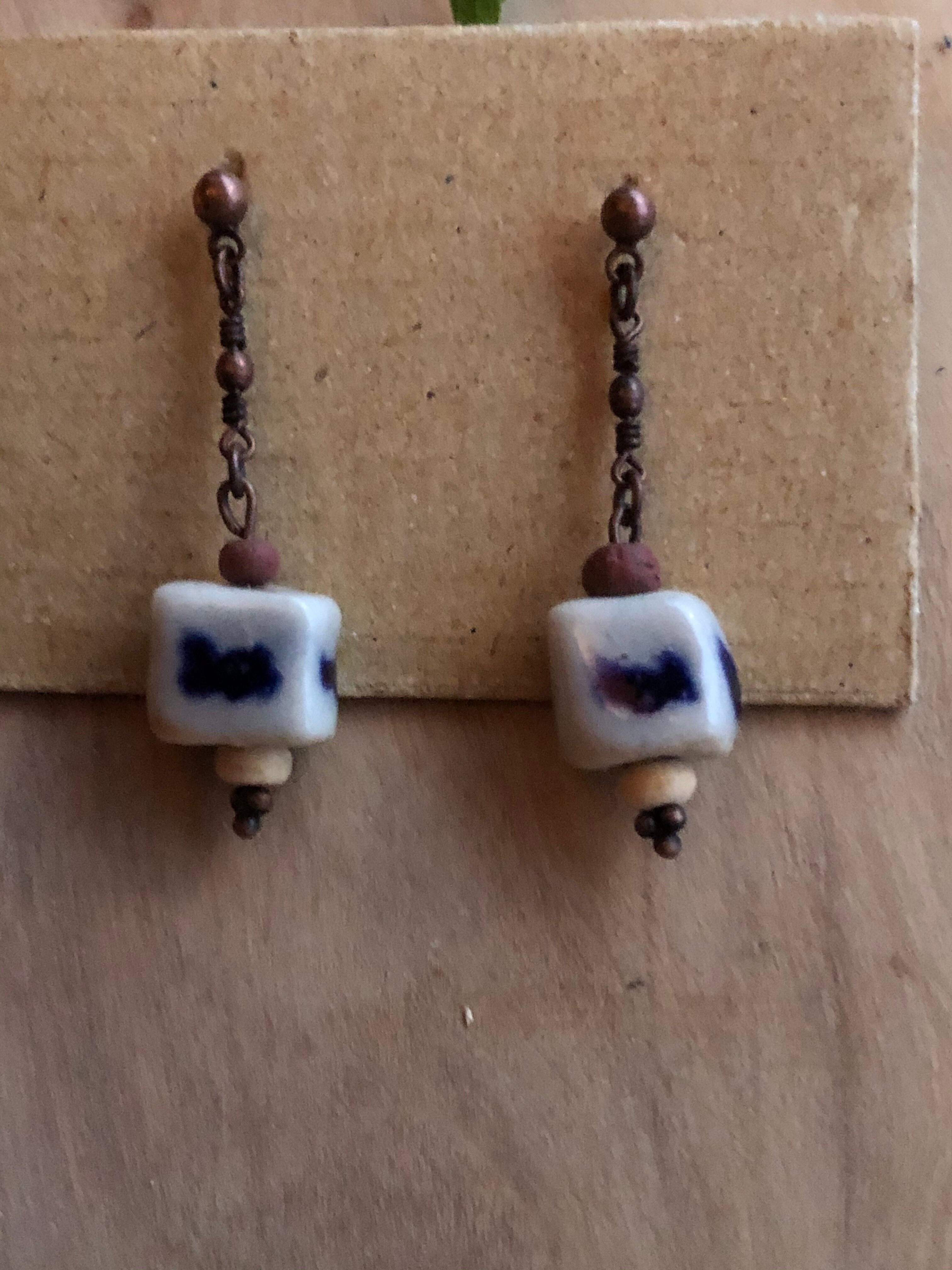 PI10 染付角玉ピアス