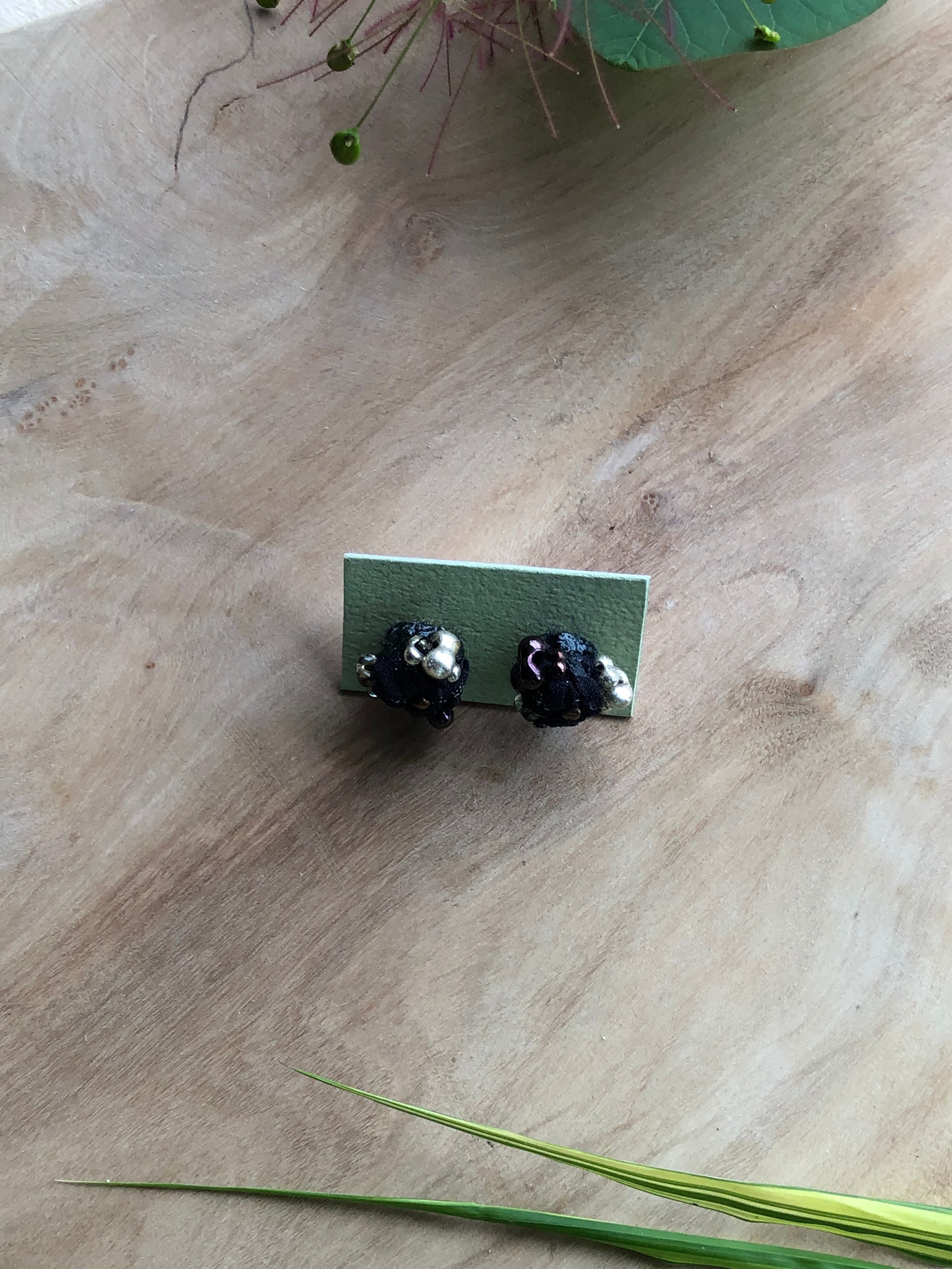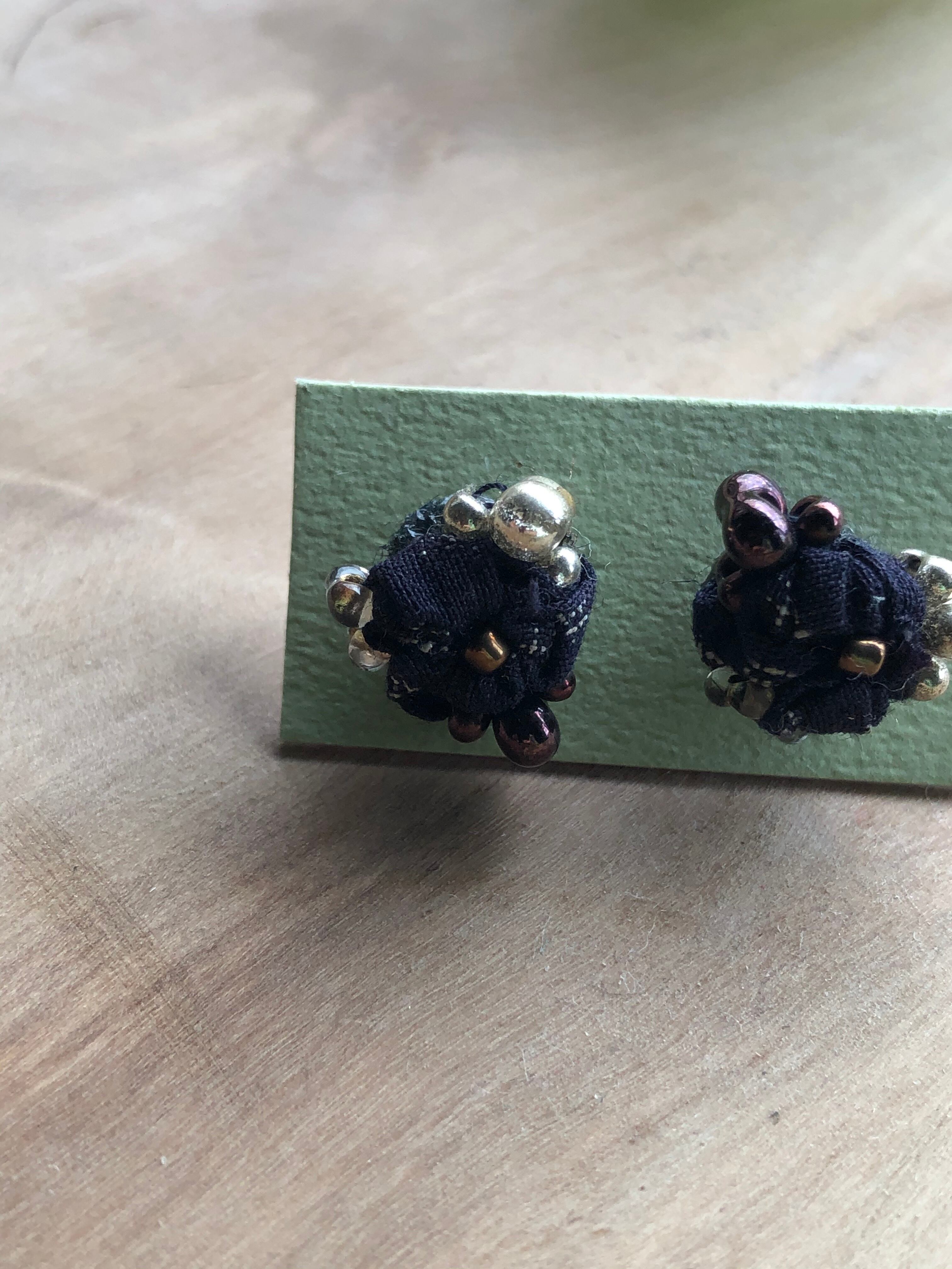 PI16 古裂ビーズ直ピアス 紺葡萄