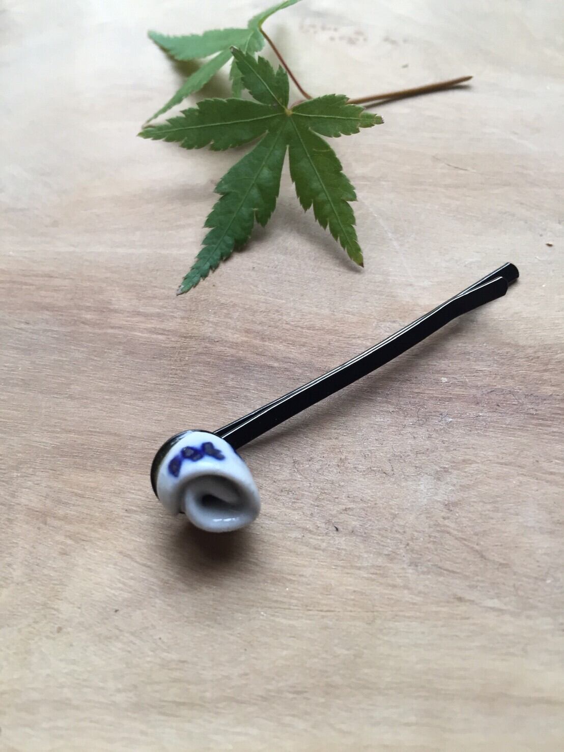 磁器土に染付藍で絵付けした小ちゃなピン留め✨