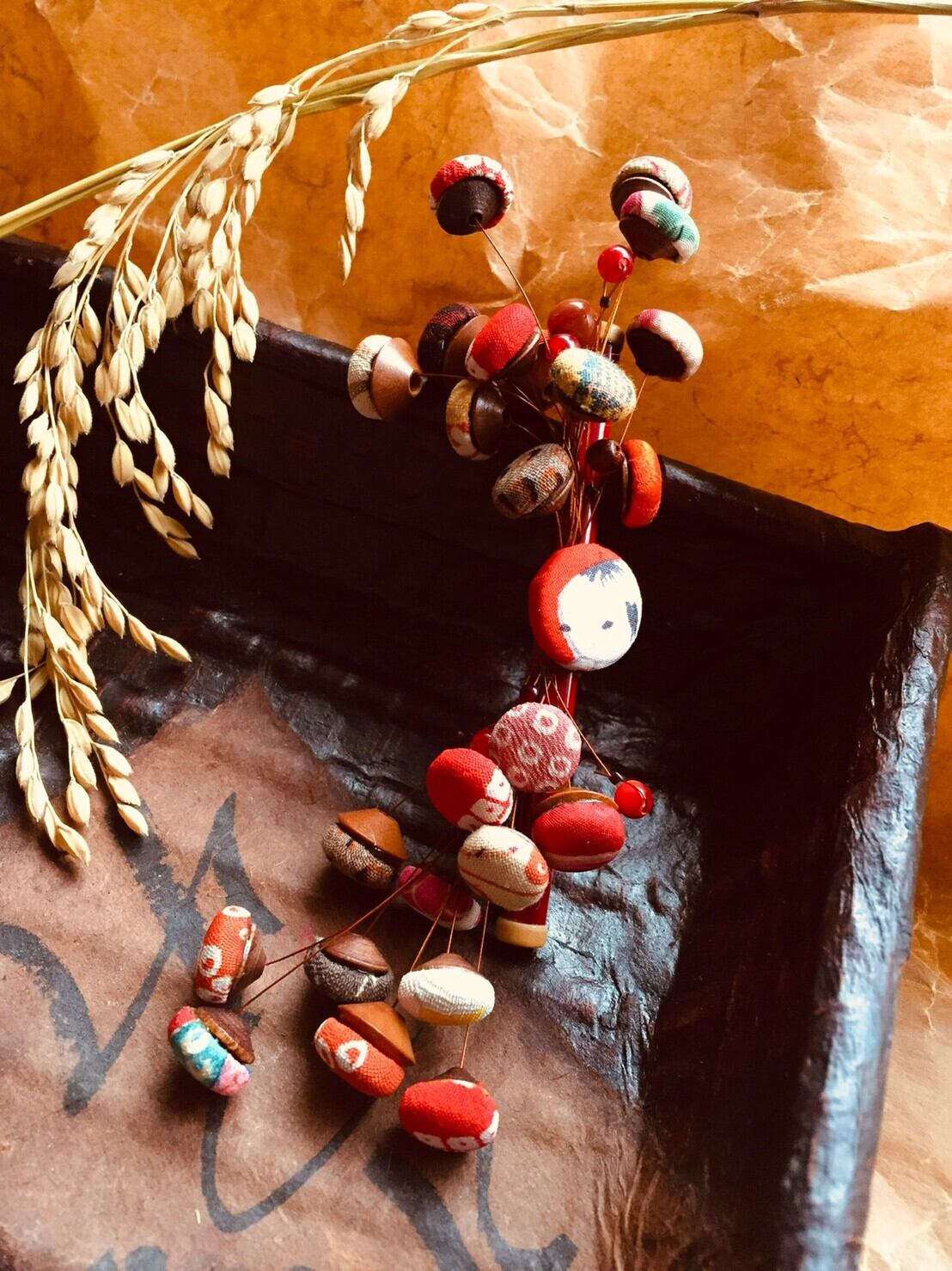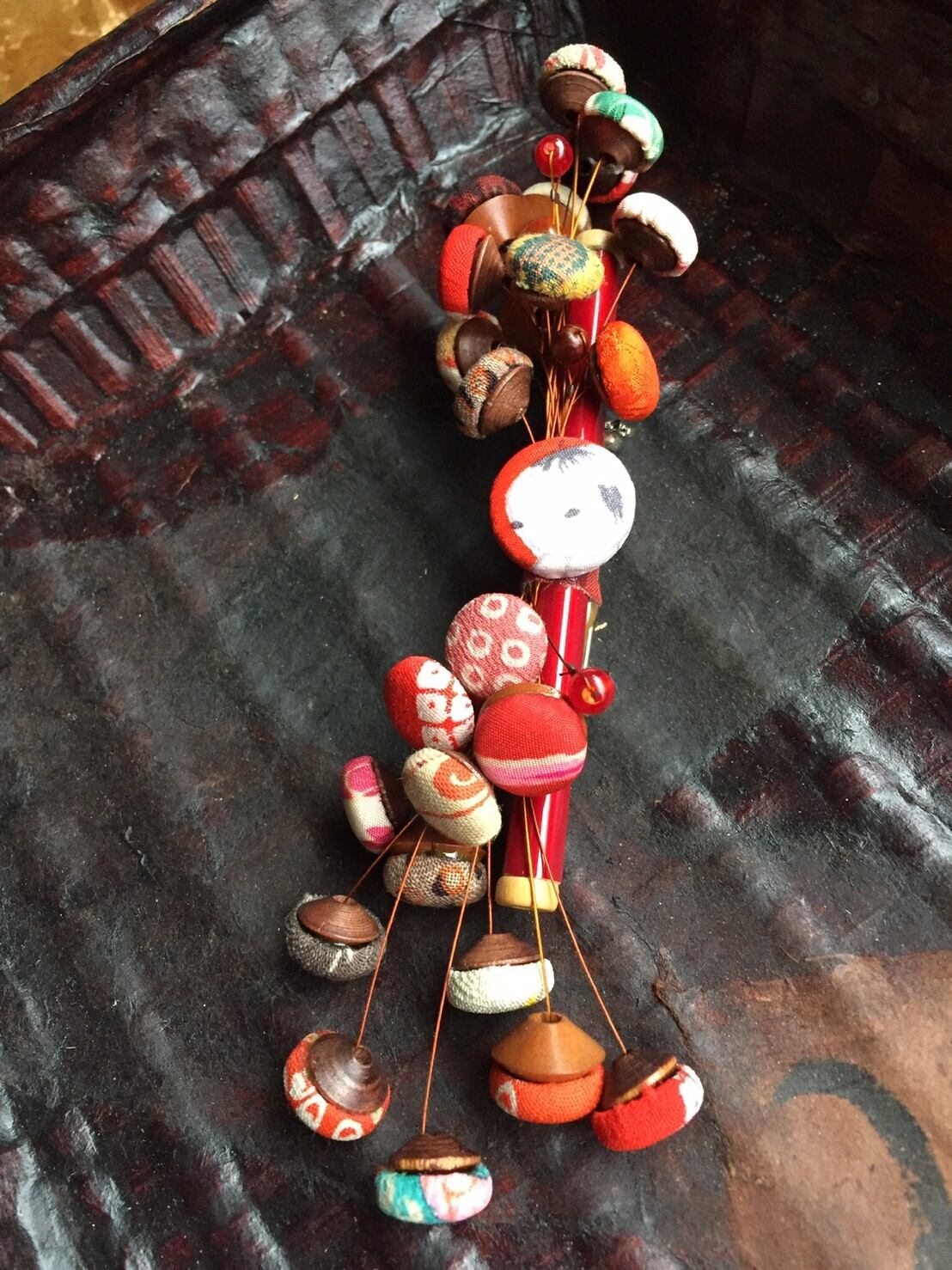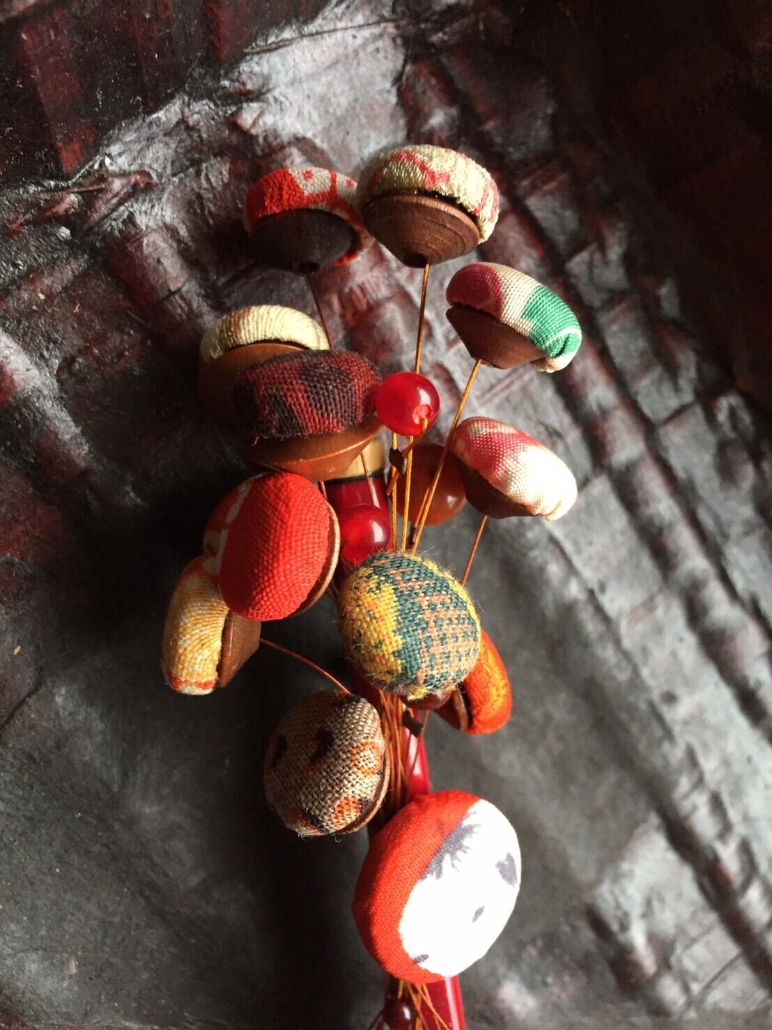 古布縮緬のくるみボタンを惜しげなく束ねたブローチ✨