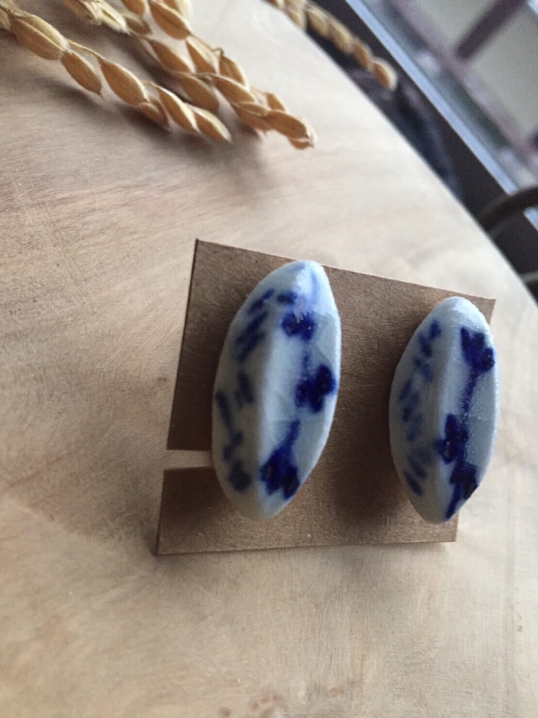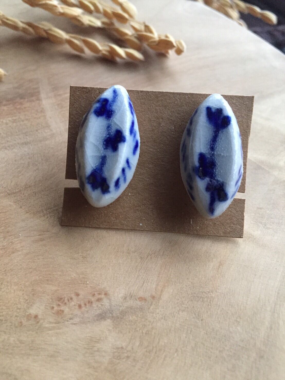 アーモンドかを縦に3面に削り出した凝った形のイヤリング。