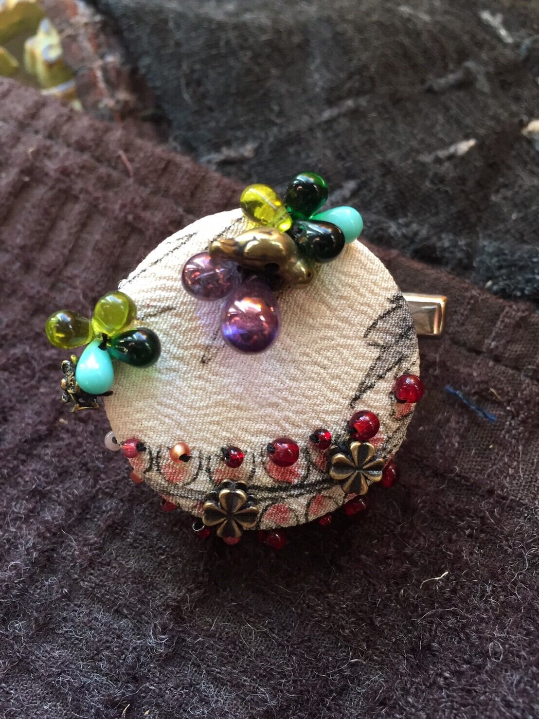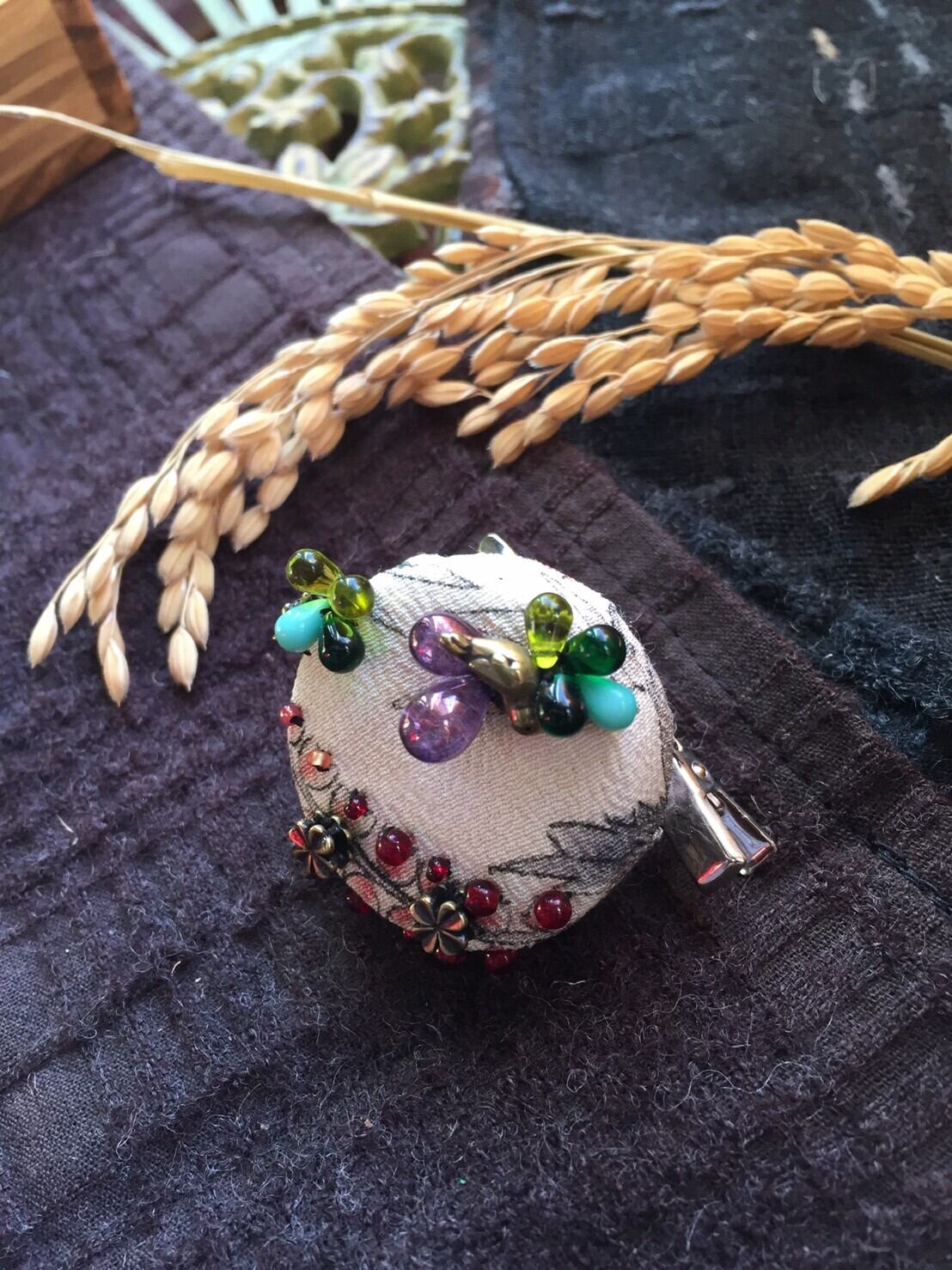 古布にビーズ刺繍の ブローチ✨