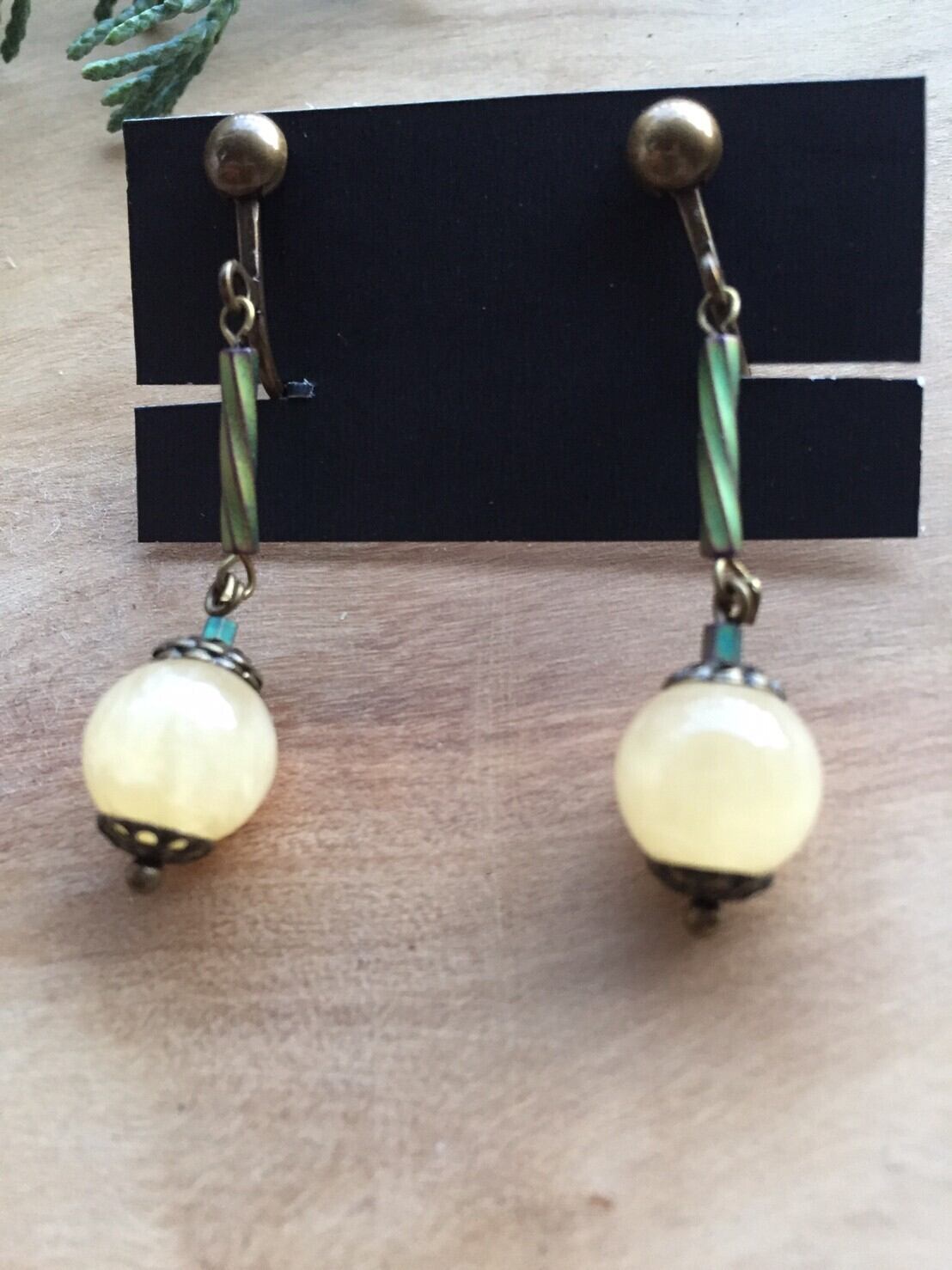 オーロラグリーンのねじり竹ビーズに、キレイな色のクリーム色のハニーストーン(天然石)を組み合わせたキレイなデザイン。
