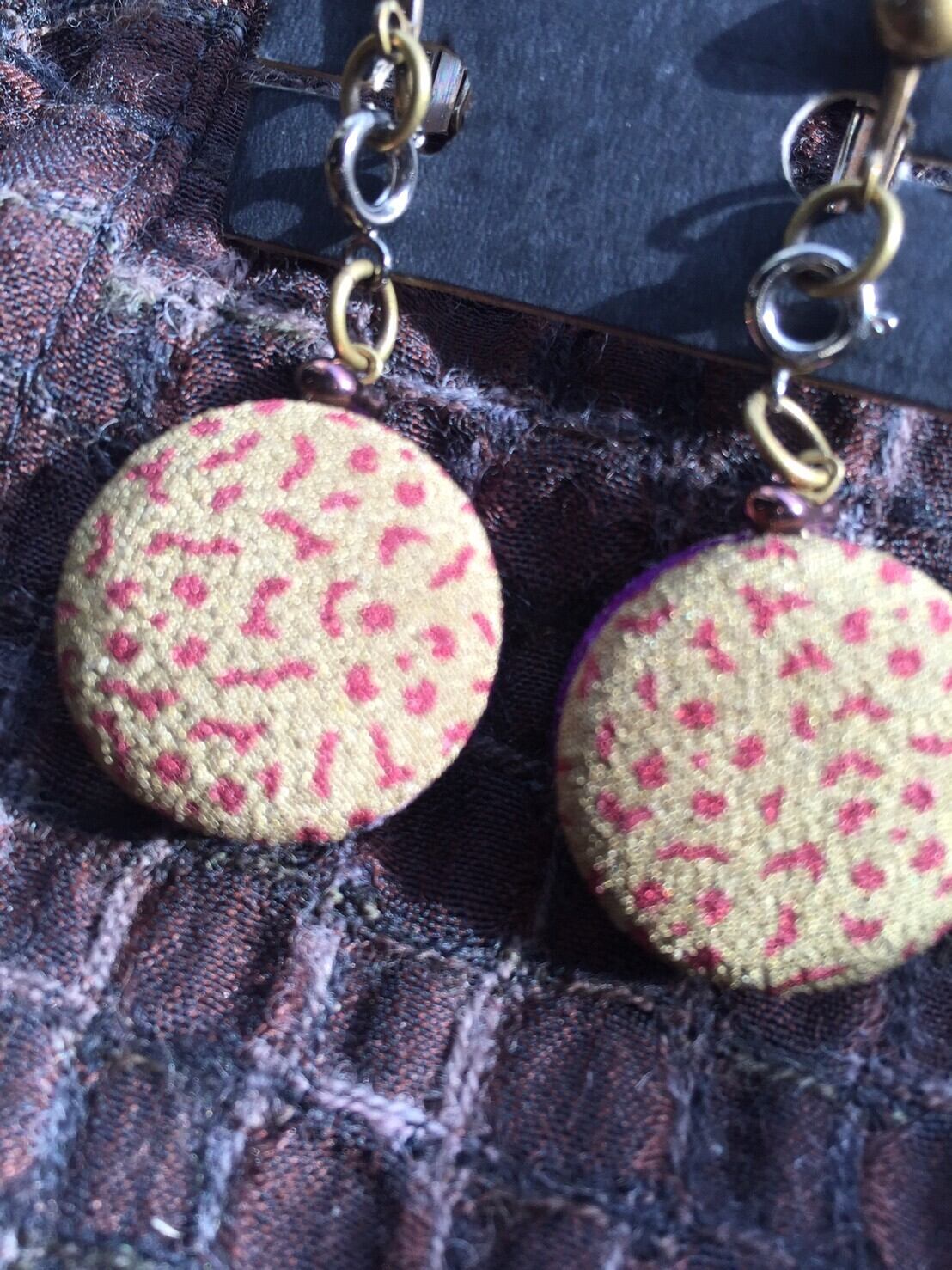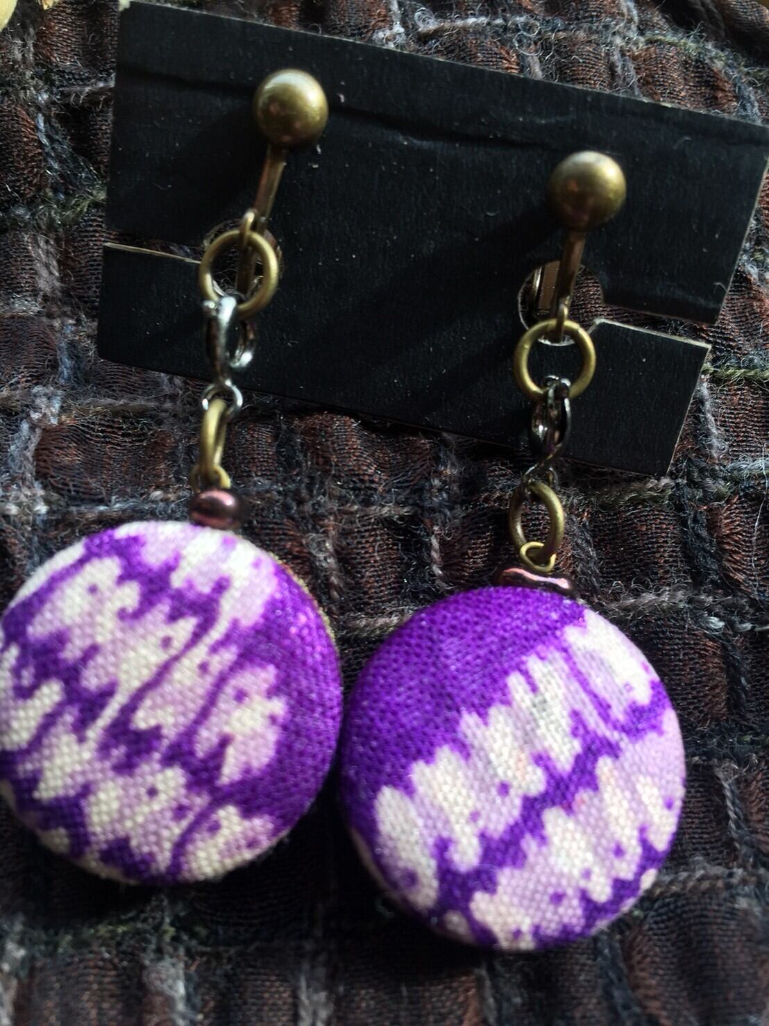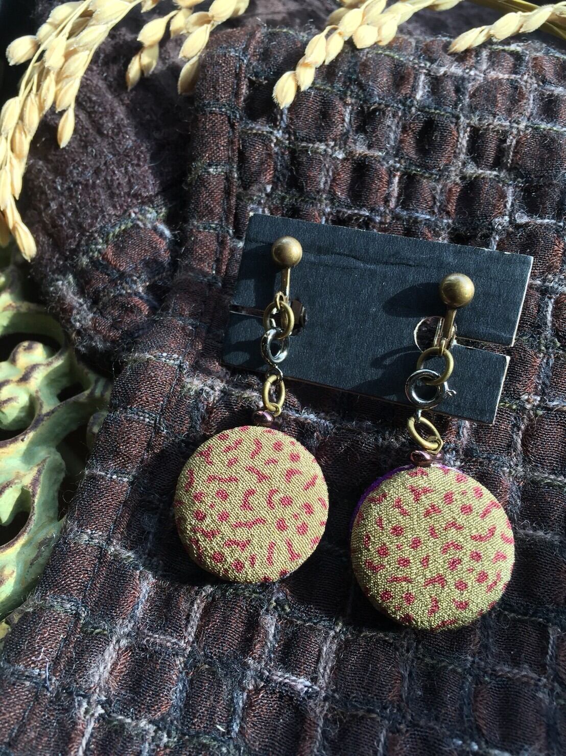 古布縮緬のくるみボタン(23㎜×高11㎜)をワンタッチで付け替えられて、リバーシブルで使える、とってもお得感のあるイヤリング